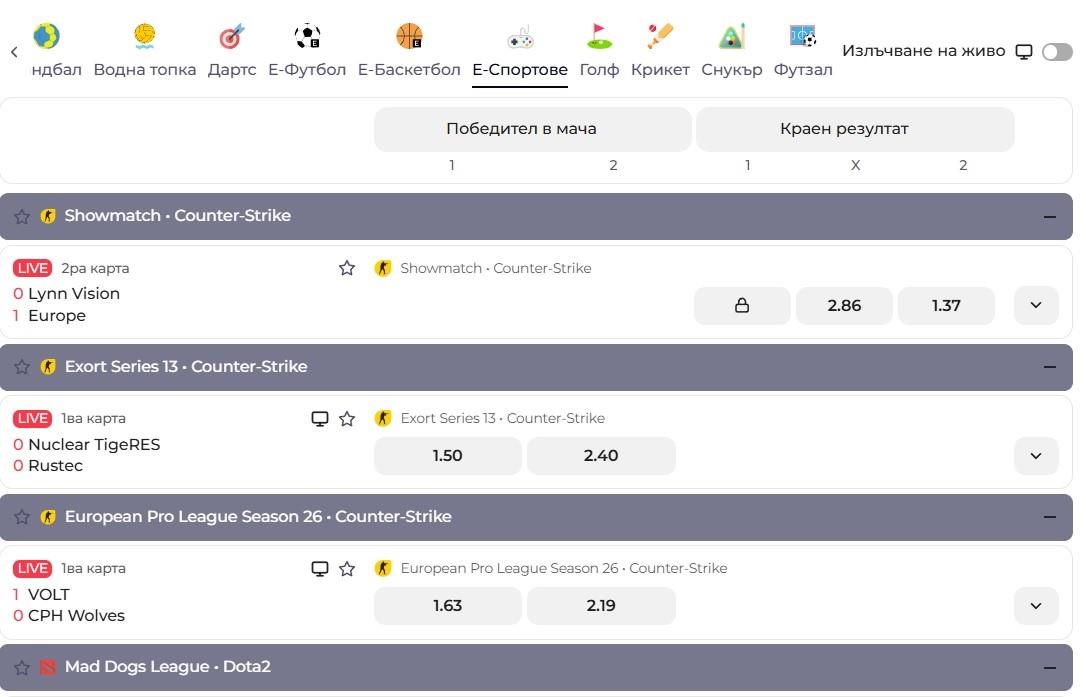- Е-Спортове